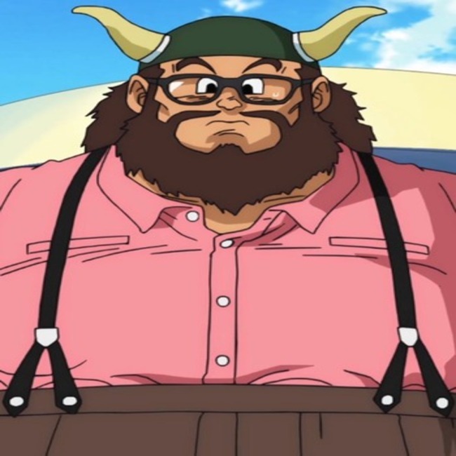 This is a picture of Ox-King, a fictional character who has killed many creatures to protect the treasure in the Dragon Ball manga. Ox-King is a tall, hairy man. Despite its menacing-sounding name, Ox-King is actually quite harmless and fun. The product is suitable for those interested in the Ox-King character.