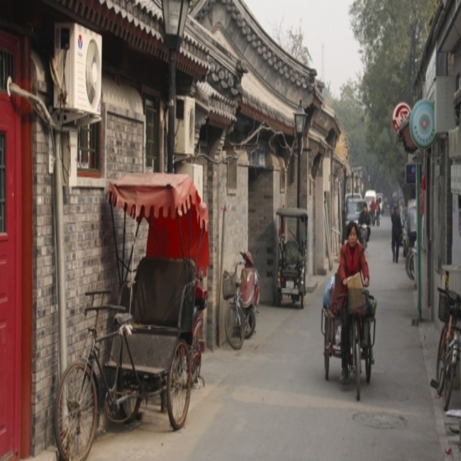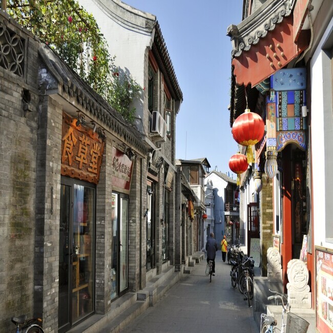 This is Hutong old town, one of the souls of Beijing capital with ancient roofs, moss clinging to the walls, old features on the side of the Forbidden City.