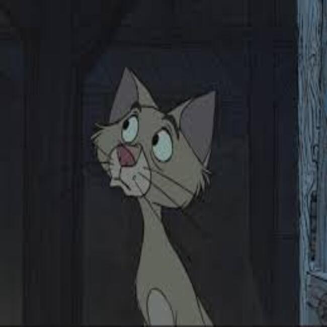 This is a picture of Tibbs, a fictional character, a tabby cat who plays a key role in the rescue plan for the puppies in 101 Dalmatians.